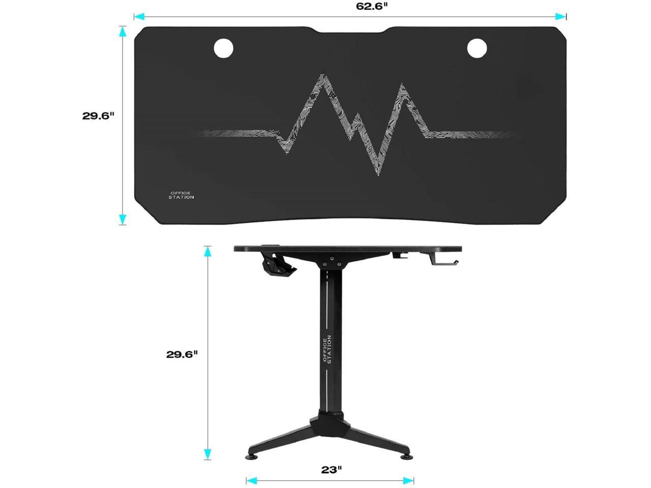 | 63 Inch Gaming Desk Y-Shaped PC Computer Table with Carbon Fibre Surface Free Mouse Pad Home Office Desk Gamer Table with Game Handle Rack Headphone Hook and Cup Holder (Black) |