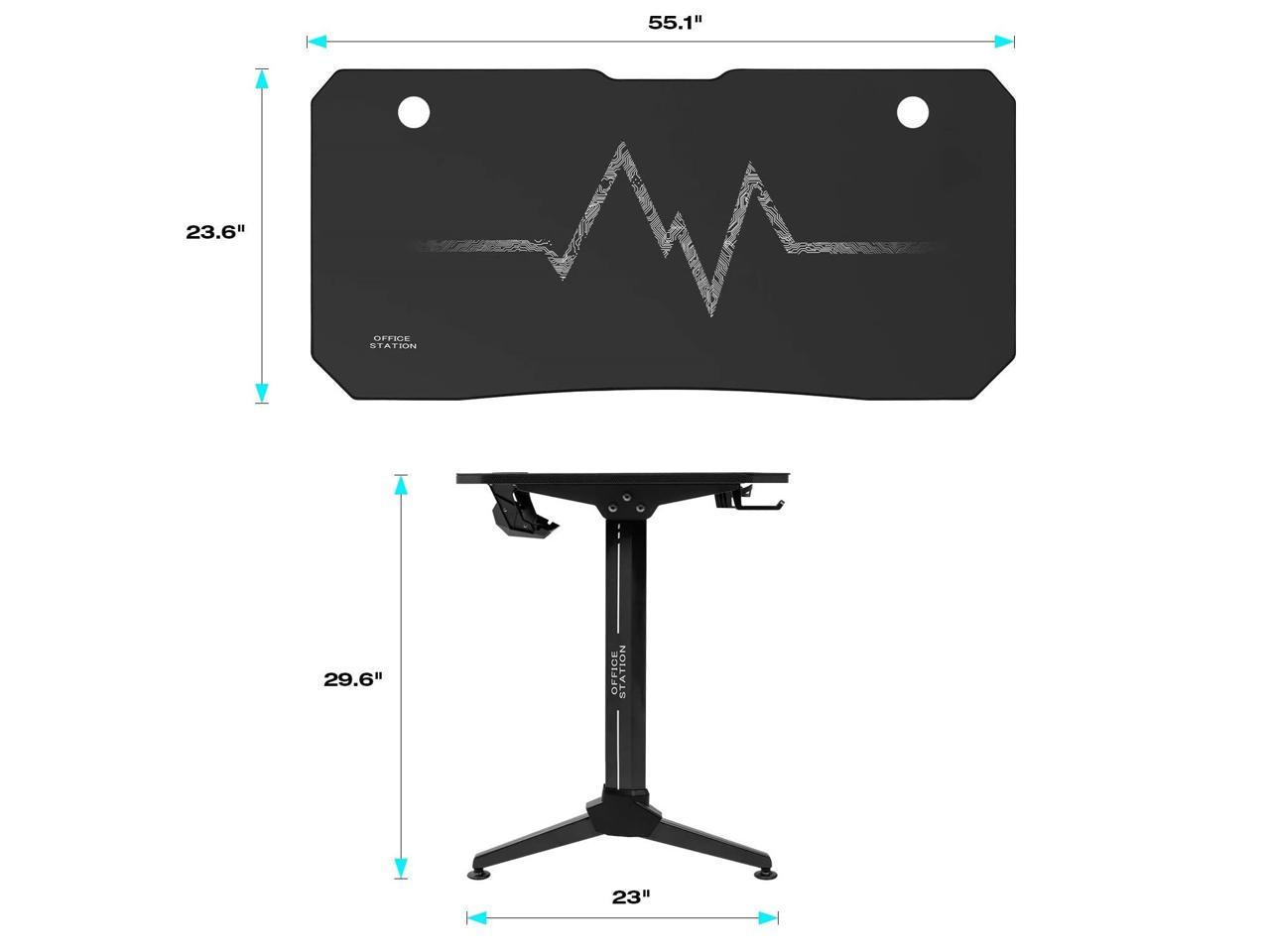 | 55 Inch Gaming Desk Racing Style PC Computer Desk Y-shaped Table Home Office Desk with Large Carbon Fiber Surface, Free Mouse Pad, Headphone Hook, Gaming Handle Rack and Cup Holder (Black) |
